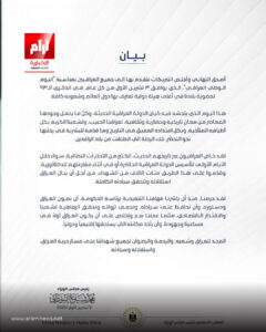 وختم رئيس الوزراء بيانه بالترحم على أرواح شهداء العراق الذين بذلوا دماءهم من أجل الحرية والاستقلال، مؤكداً أن المجد سيبقى للعراق وشعبه.