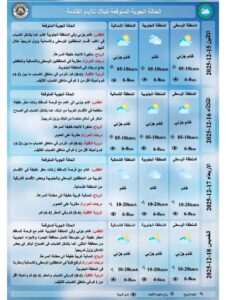 الحالة الجوية المتوقعة ليوم الأربعاء